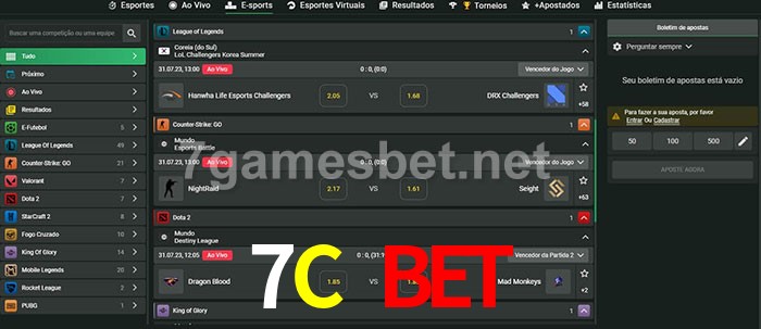 A aposta 7C Bet oferece aos jogadores a experiência mais conveniente de apostas em eSports!